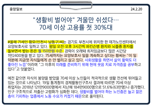 젊은 층이 기피하는 업종에서 결국 노동을 하게 된다고 합니다.